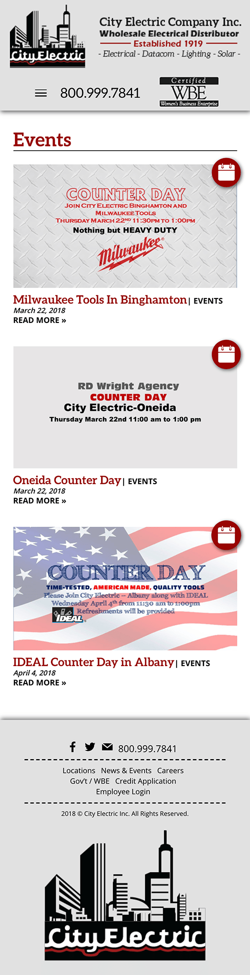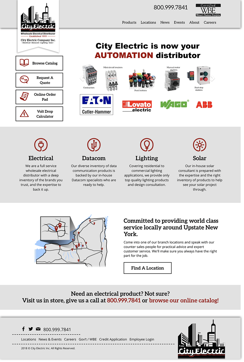 City Electric Co. is a century-old electrical products distributor with locations all over New York State. Their new website features an updating list of brands stocked on CE shelves, information on where City Electric facilities can be found, and connect repeat customers with their “counter day” meet-ups.