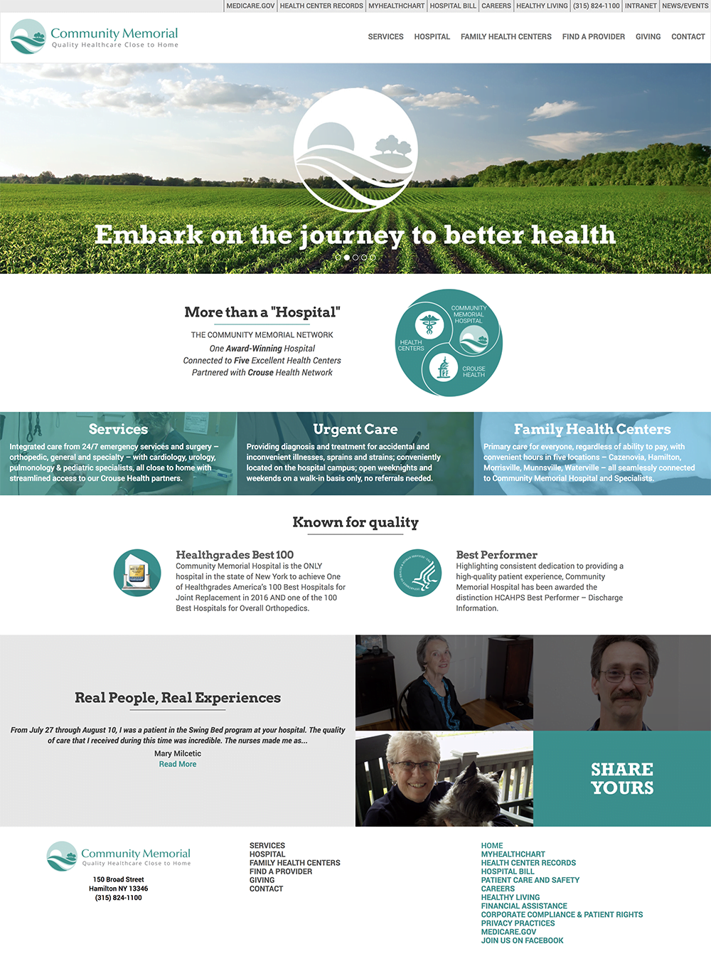 Community Memorial needed a digital home-base for its network of health centers in and around Central New York. With an audience that has varying needs and degrees of computer knowledge, the site had to be designed with accessibility in front of mind. The site was to provide as much information as possible to patients so they could proceed with confidence to either schedule an appointment at one of their health centers, or find the right location for the appointment they already have.