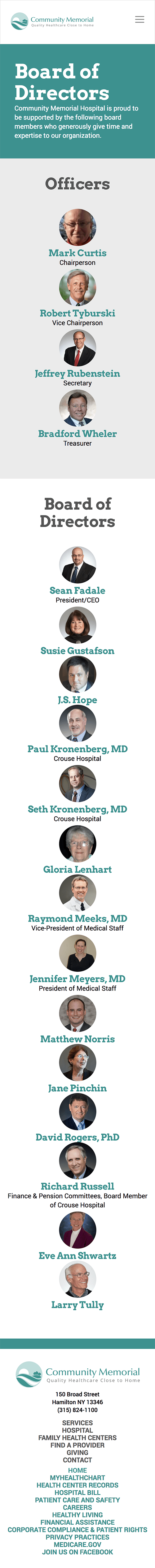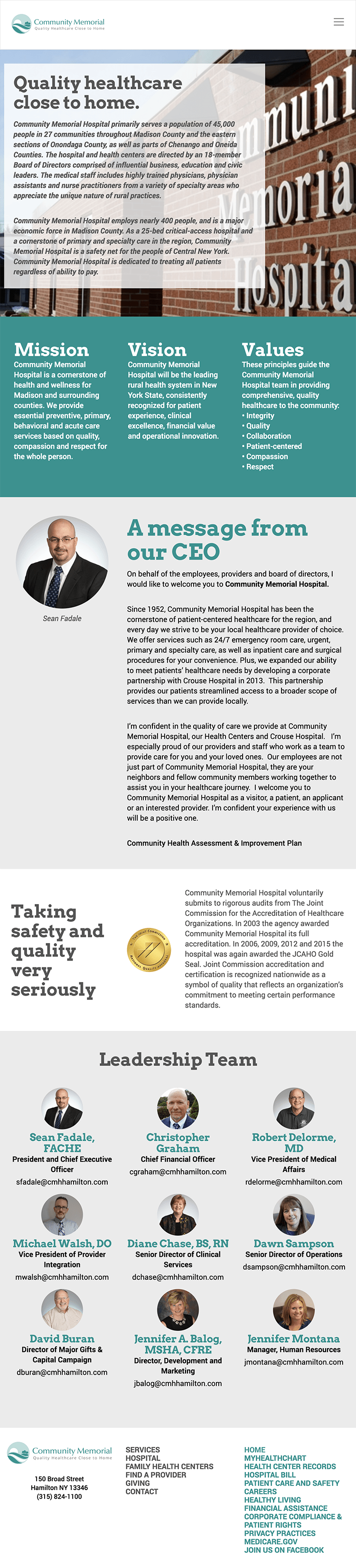 Community Memorial’s new website launched in 2016. Its impact resonated with its patients, who appreciated the ability to quickly find information about CMH services before coming into a facility. The marketing site quickly expanded to include a custom-built employee intranet for storing and accessing documents, and an added navigation for quickly finding health reports and bill payment platforms. The site sees about 11,000 visits per month and retains those visitors for an average of 3.6 page views. 36% of traffic comes directly from within the town of Hamilton, with the majority of whats leftover coming from other Central New York cities.